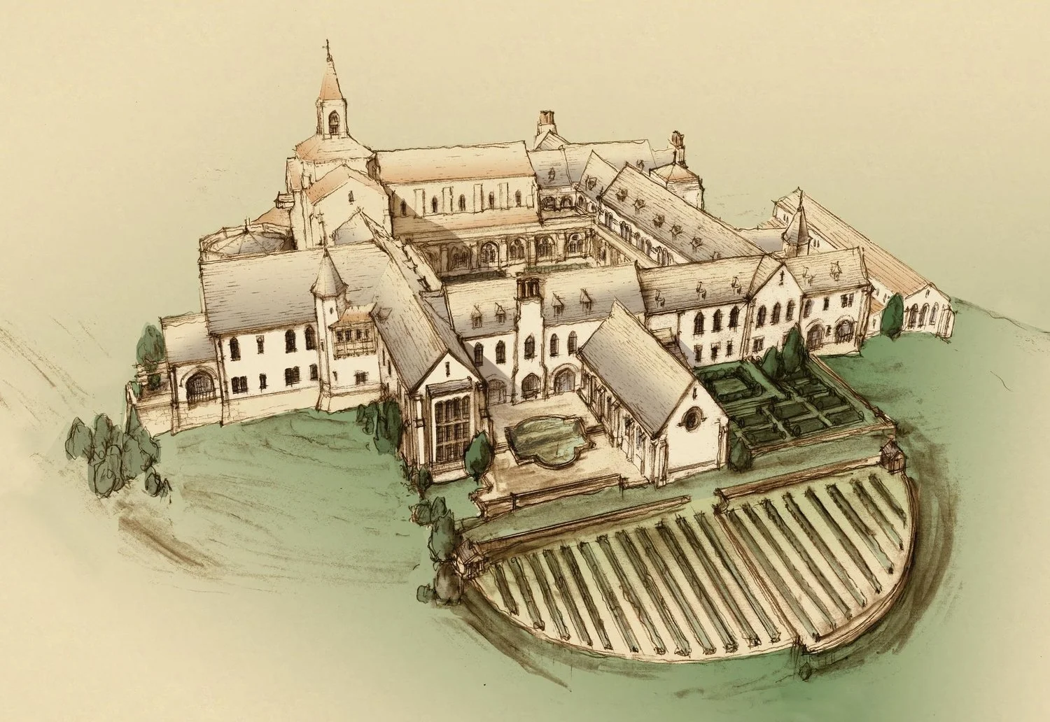 The concept for the church and monastery is based on Anthony’s 25 years studying the great Cistercian foundations of Europe.